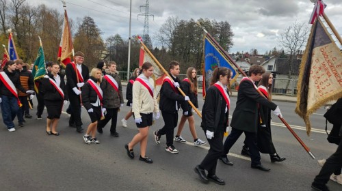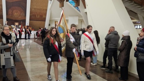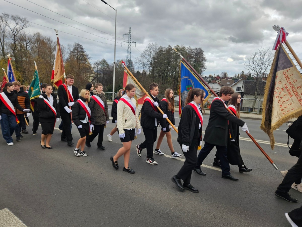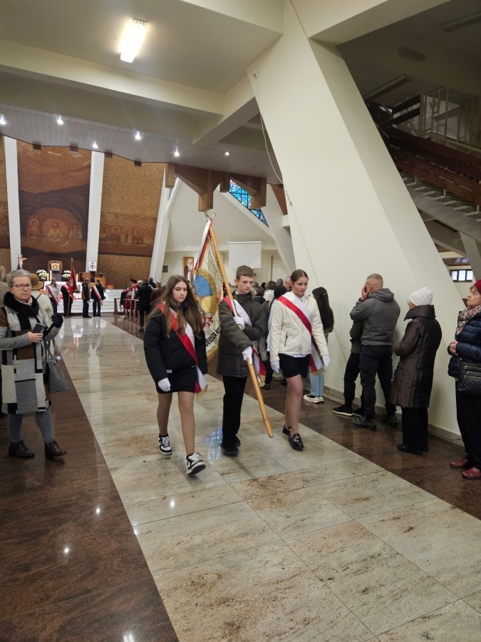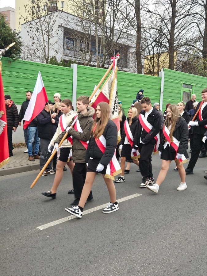 Poczet sztandarowy w składzie: Natalia Bieniek, Martyna Jopek, Vanessa Hankus, Natalia Piechota, Michał Pawicki, Miłosz Ziółkiewicz z klasy 8a reprezentował naszą szkołę w miejskich obchodach 107 rocznicy Odzyskania Niepodległości. Uczniowie uczestniczyli w uroczystej mszy świętej w intencji Ojczyzny, oraz w przemarszu na Cmentarz Wojska Polskiego w Bielsku-Białej, gdzie odbył się Apel Pamięci z udziałem Kompanii Honorowej 18 Batalionu Powietrznodesantowego.