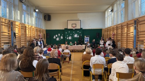 Młodzi artyści wprowadzili zgromadzoną społeczność szkolną w świąteczny nastrój, przypominając o takich wartościach jak czas spędzony razem, wrażliwość na drugiego człowieka, miłość i potrzeba dzielenia się z innymi. Na scenie nie zabrakło symbolicznych elementów wigilijnego stołu, takich jak biały obrus, opłatek czy wolne miejsce dla niespodziewanego gościa, które podkreślały znaczenie polskich tradycji.