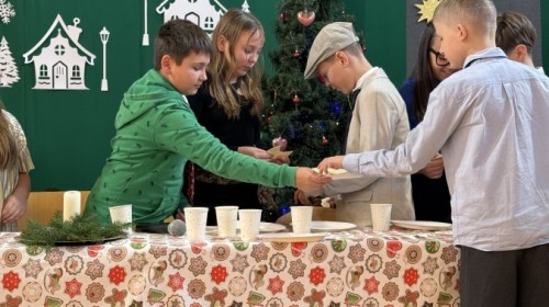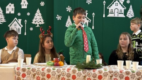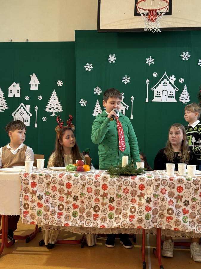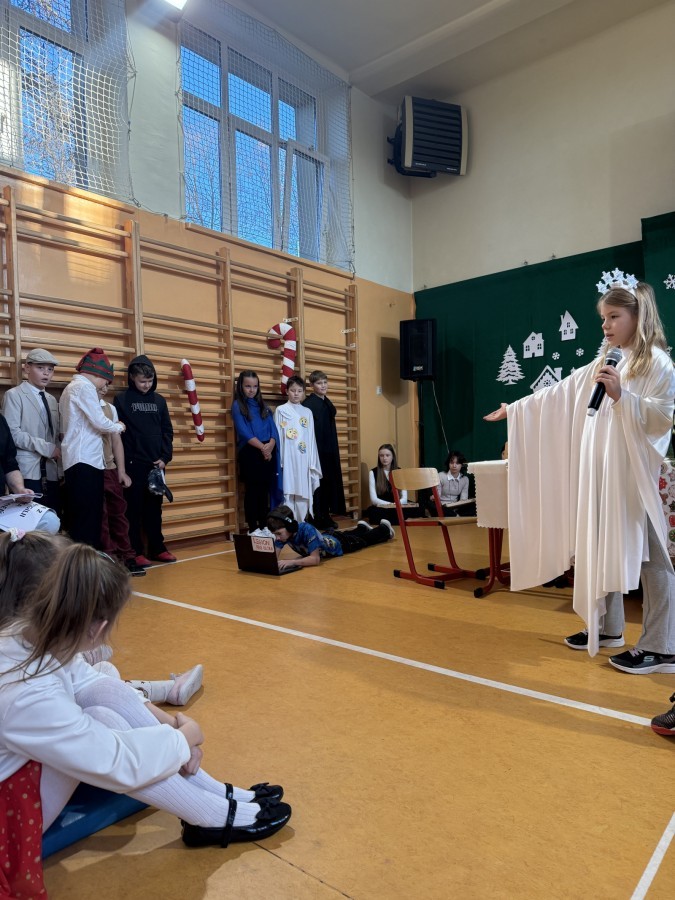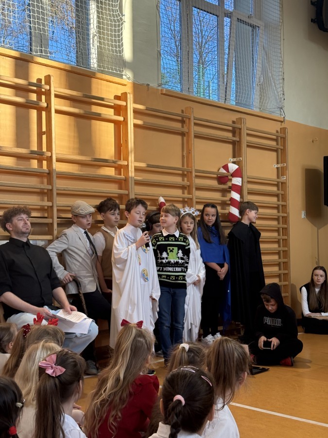 W dniu 19 grudnia w naszej szkole odbył się wyjątkowy apel bożonarodzeniowy, przygotowany przez uczniów klas czwartych. Tegoroczne przedstawienie zostało zainspirowane „Opowieścią wigilijną” Charlesa Dickensa oraz bogatymi polskimi tradycjami związanymi z wieczerzą wigilijną.