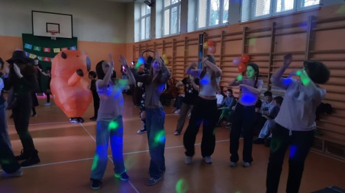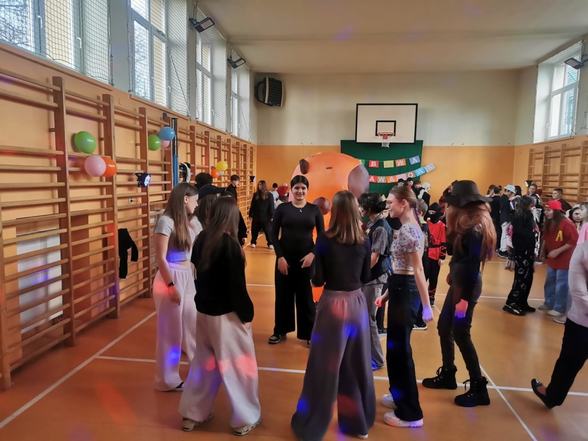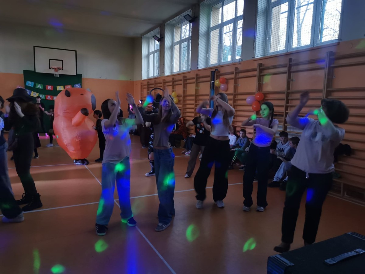 10 lutego w naszej szkole odbyła się długo wyczekiwana zabawa karnawałowa dla klas 4–8. Tego dnia sala gimnastyczna zamieniła się w wyjątkową, roztańczoną przestrzeń. W trakcie zabawy towarzyszyła nam dynamiczna muzyka, która zachęcała do wspólnego tańca. Uczniowie zaprezentowali również układy przygotowane podczas Dnia Tańca. Nie zabrakło również tradycyjnej belgijki, która jak zawsze cieszy się ogromnym zainteresowaniem. Dużo emocji wzbudziła także zabawa w „krzesełka”, w której uczestnicy rywalizowali o miejsce przy dźwiękach muzyki. Śmiechu i dobrej energii nie brakowało do samego końca!