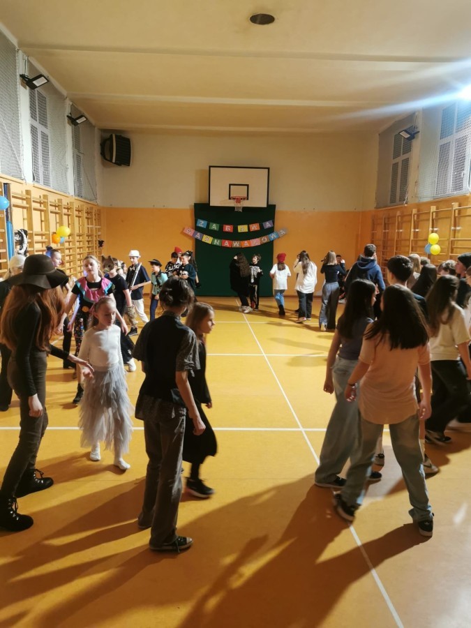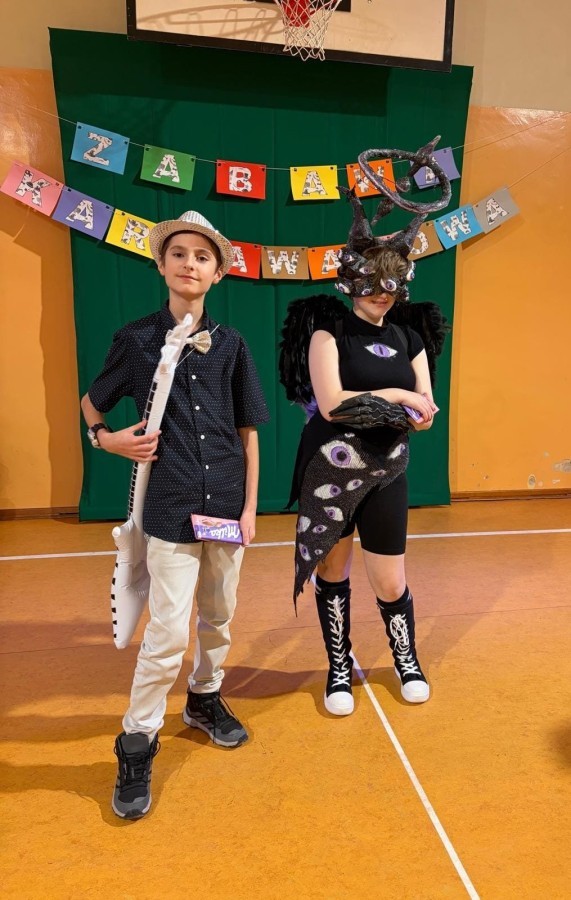 Uczniowie zachwycili kreatywnymi przebraniami – można było spotkać postacie z filmów, bajek, świata sportu, a także oryginalne, własnoręcznie przygotowane stroje. Pomysłowość uczestników sprawiła, że wybór Króla i Królowej Balu nie był łatwy. Ostatecznie Królem Balu został Namir Krzyżak z kl. 5, natomiast tytuł Królowej Balu zdobyła Julia Wasilewska z klasy 8. Serdecznie gratulujemy zwycięzcom!