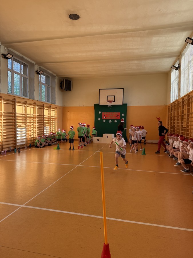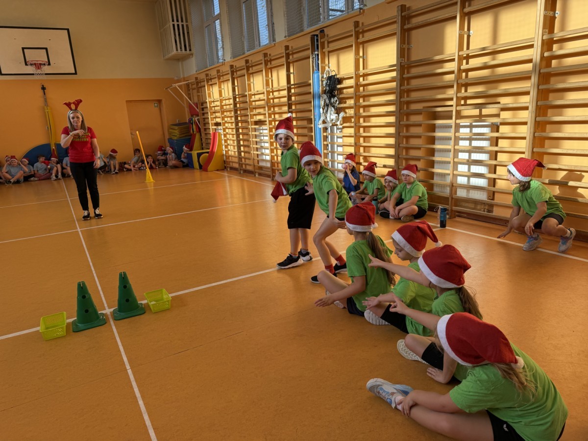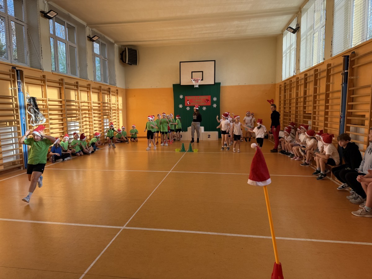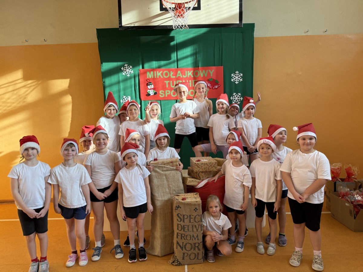 4 grudnia 2025 roku uczniowie klas młodszych wzięli udział w Mikołajkowym Turnieju Sportowym. To wyjątkowe wydarzenie, na które dzieci czekają z niecierpliwością każdego roku, zostało zorganizowane przez nauczycielki edukacji wczesnoszkolnej – panią Roksanę Bułkę oraz panią Annę Ratomską.