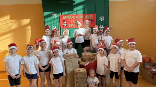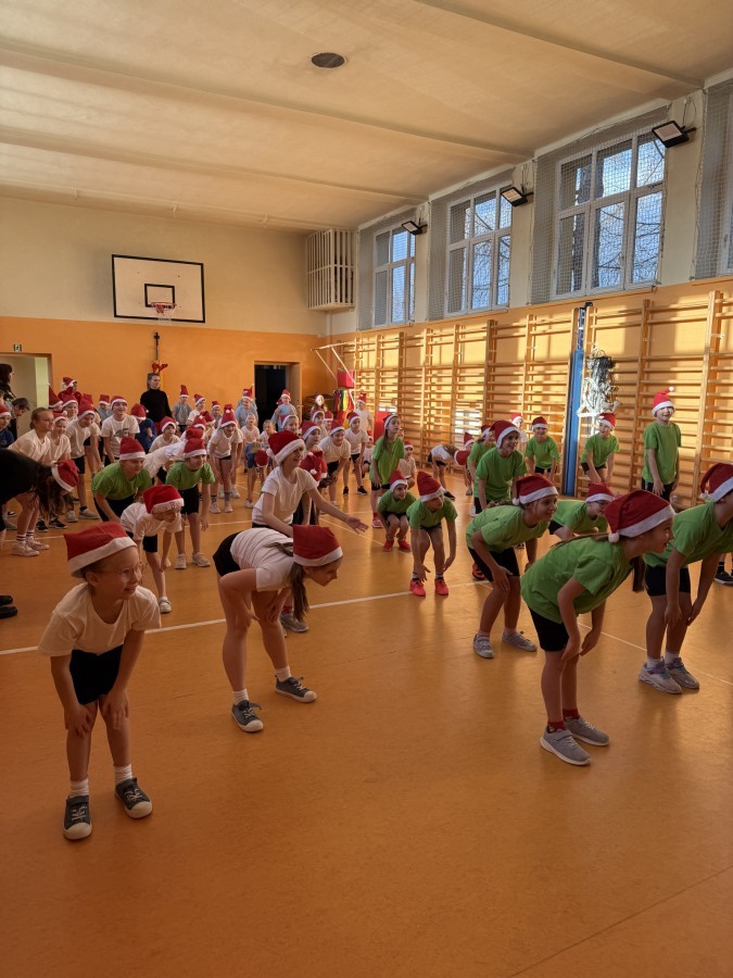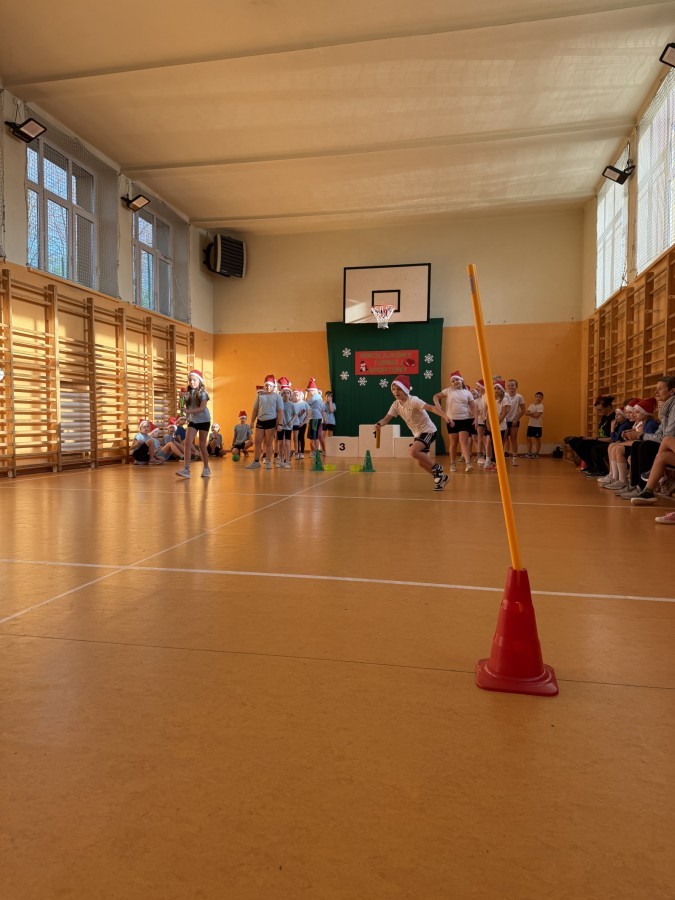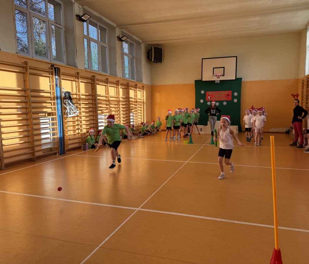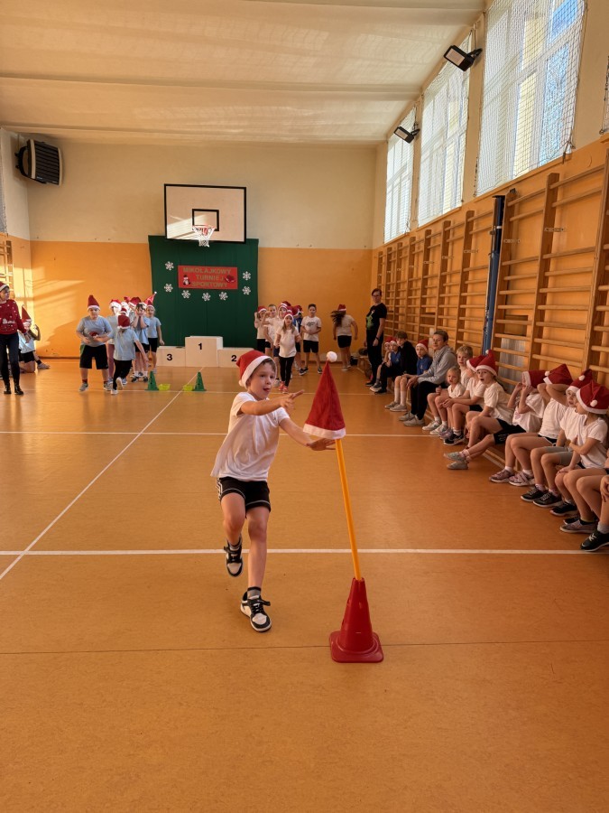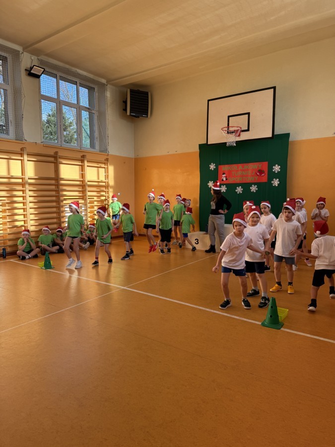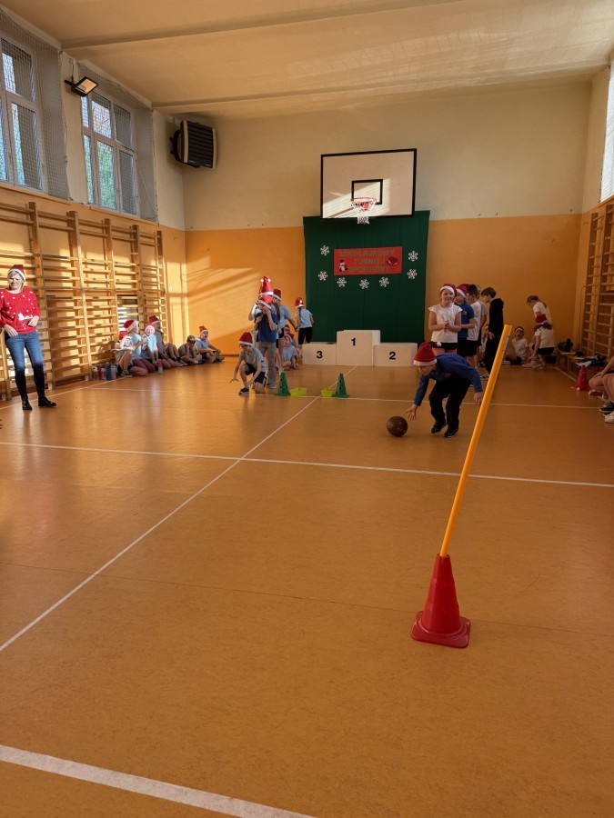 4 grudnia 2025 roku uczniowie klas młodszych wzięli udział w Mikołajkowym Turnieju Sportowym. To wyjątkowe wydarzenie, na które dzieci czekają z niecierpliwością każdego roku, zostało zorganizowane przez nauczycielki edukacji wczesnoszkolnej – panią Roksanę Bułkę oraz panią Annę Ratomską.