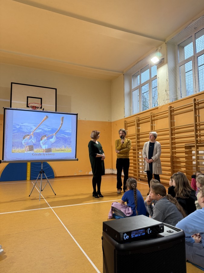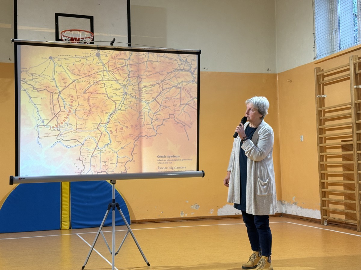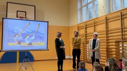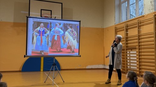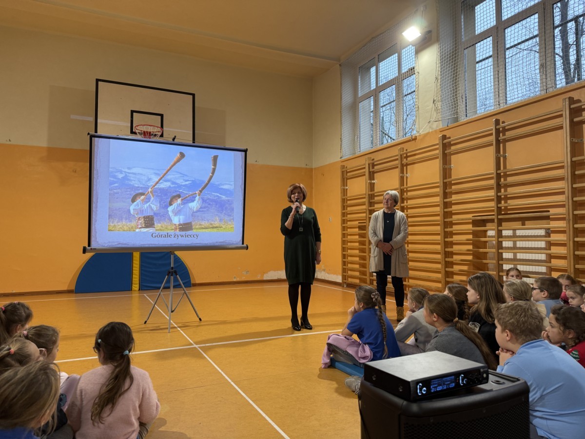 11 grudnia w Naszej Szkole odbyło się spotkanie z etnografem w ramach Ministerialnego programu „Nasze Tradycje” – projekt Beskidzka Szkoła Folkloru. Klasy 1-6 uczestniczyły w spotkaniu z Panią Barbarą Rosiek, pracującą w Muzeum Miejskim w Żywcu. Pani Basia przybliżyła nam historię i tradycję górali żywieckich – charakterystyczny ubiór, obrzędy, techniki artystyczne, a także zwyczaje związane z Bożym Narodzeniem.