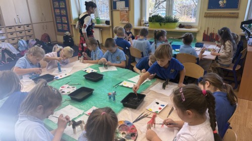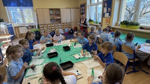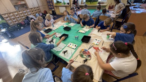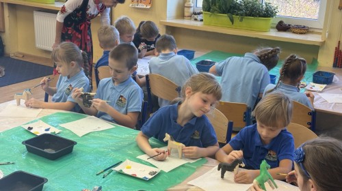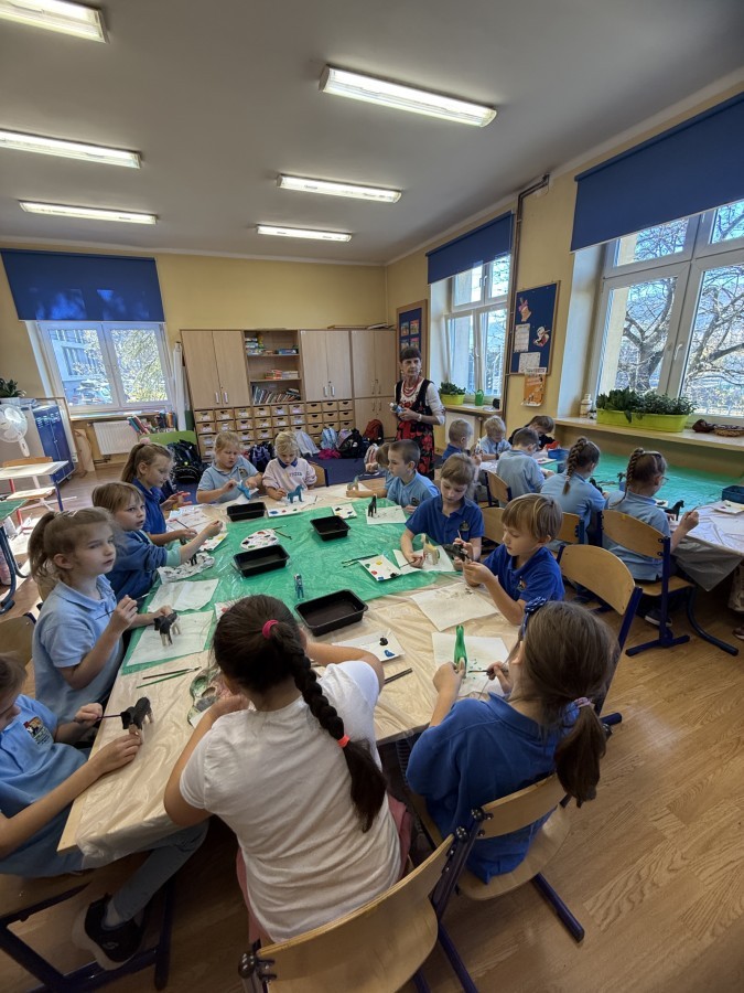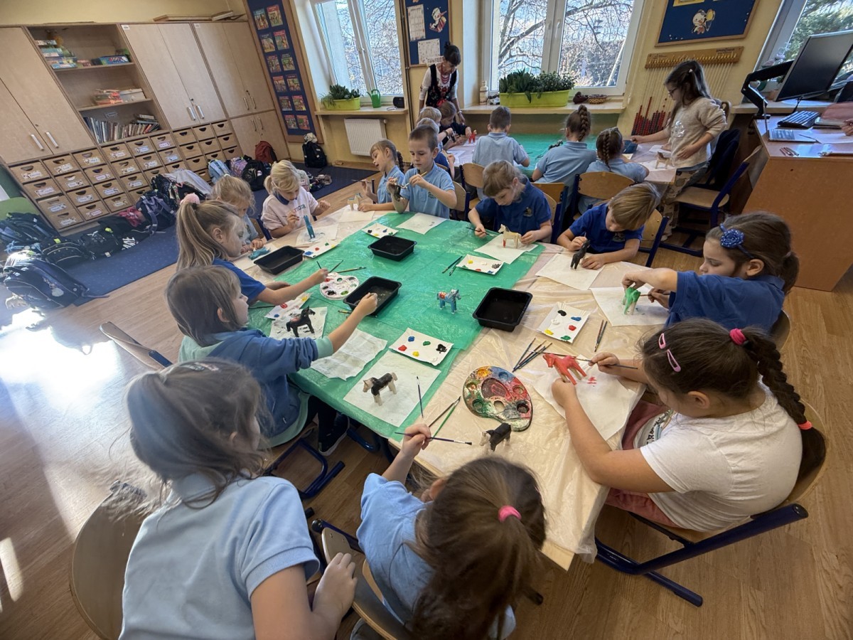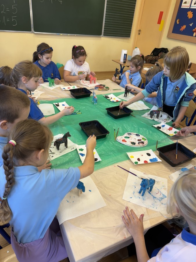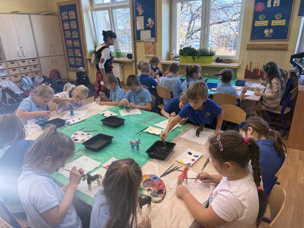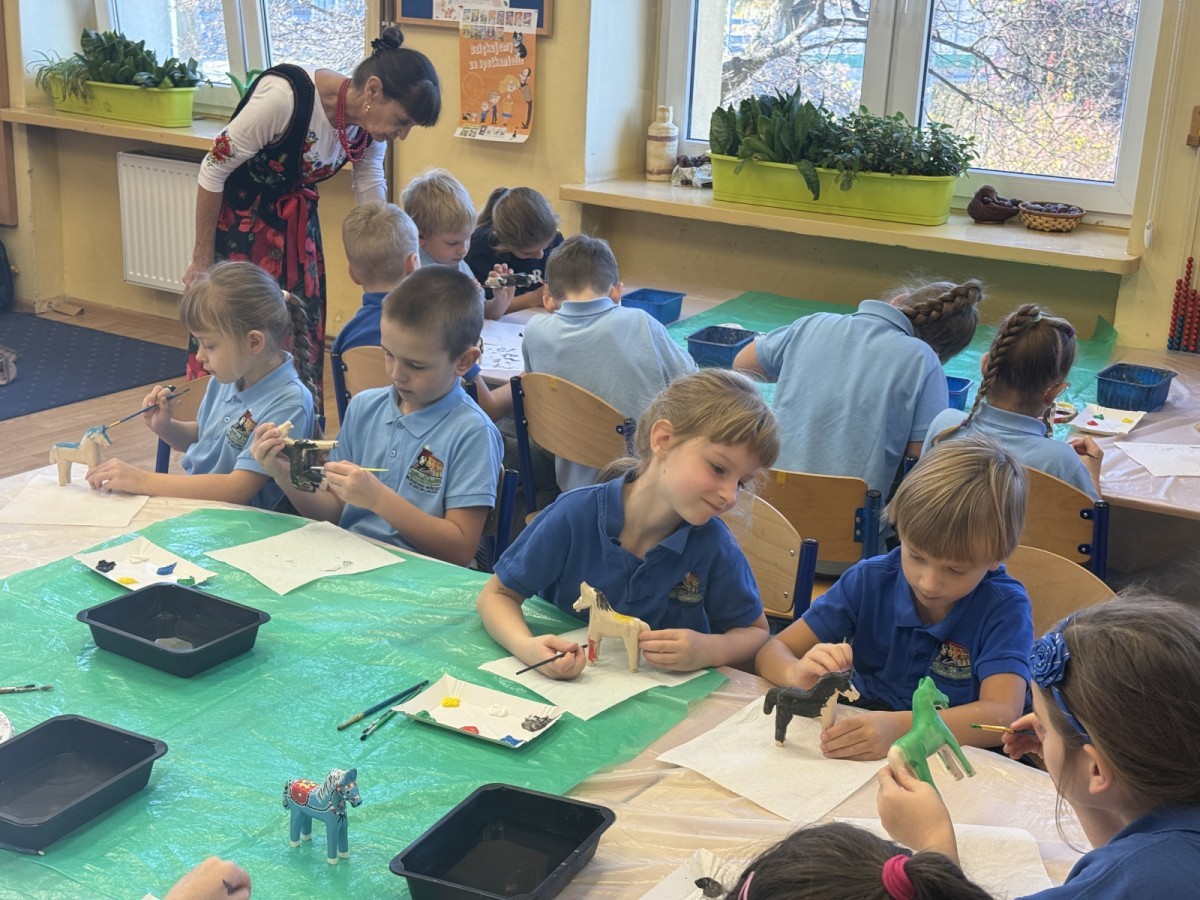 6 listopada w Naszej Szkole odbyły się kolejne warsztaty w ramach Ministerialnego programu „Nasze Tradycje” – projekt Beskidzka Szkoła Folkloru. Przyszedł czas na klasy 1a i 2a, które miały możliwość uczestniczyć w warsztatach „Tworzenie tradycyjnych zabawek drewnianych”. Dzieci malowały drewniane koniki i ptaszki według własnego pomysłu. Wykazały się przy tym dużą cierpliwością i pomysłowością.