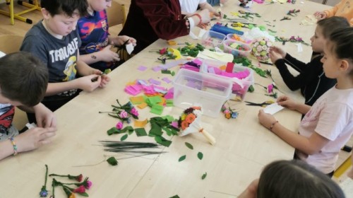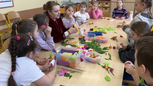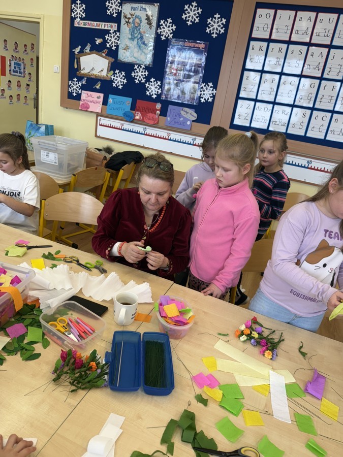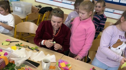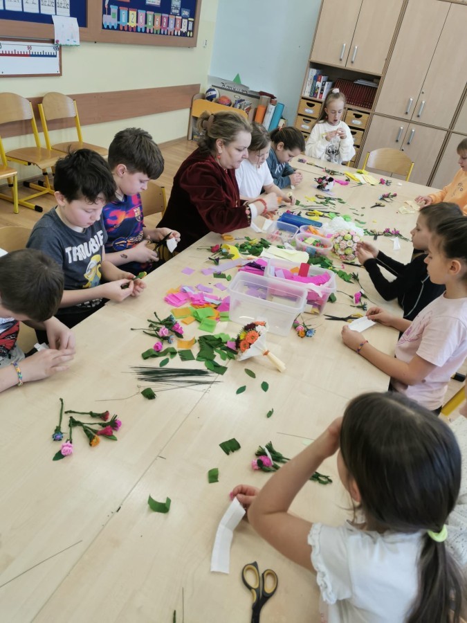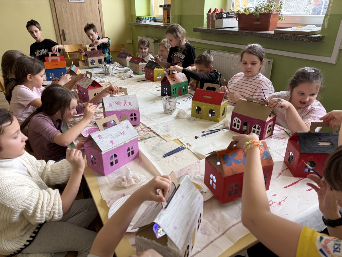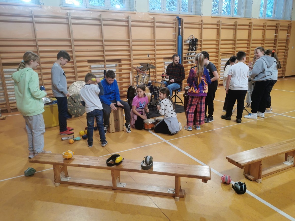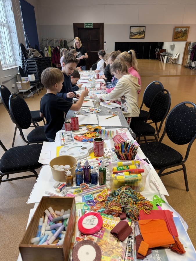 Atrakcje czekały na dzieci także w szkole. Odbyły się warsztaty perkusyjne, podczas których uczestnicy mogli spróbować gry na instrumentach perkusyjnych. Dużym zainteresowaniem cieszyły się również warsztaty tworzenia figurek z masy cukrowej, zajęcia plastyczne, podczas których dzieci budowały kreatywne „ekodomki”, a także warsztaty bibułkarstwa, w trakcie których powstały barwne kwiaty z bibuły.