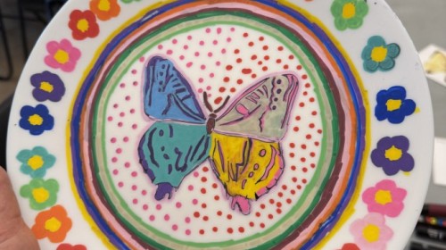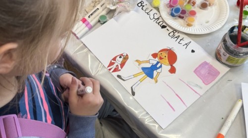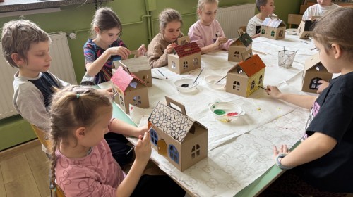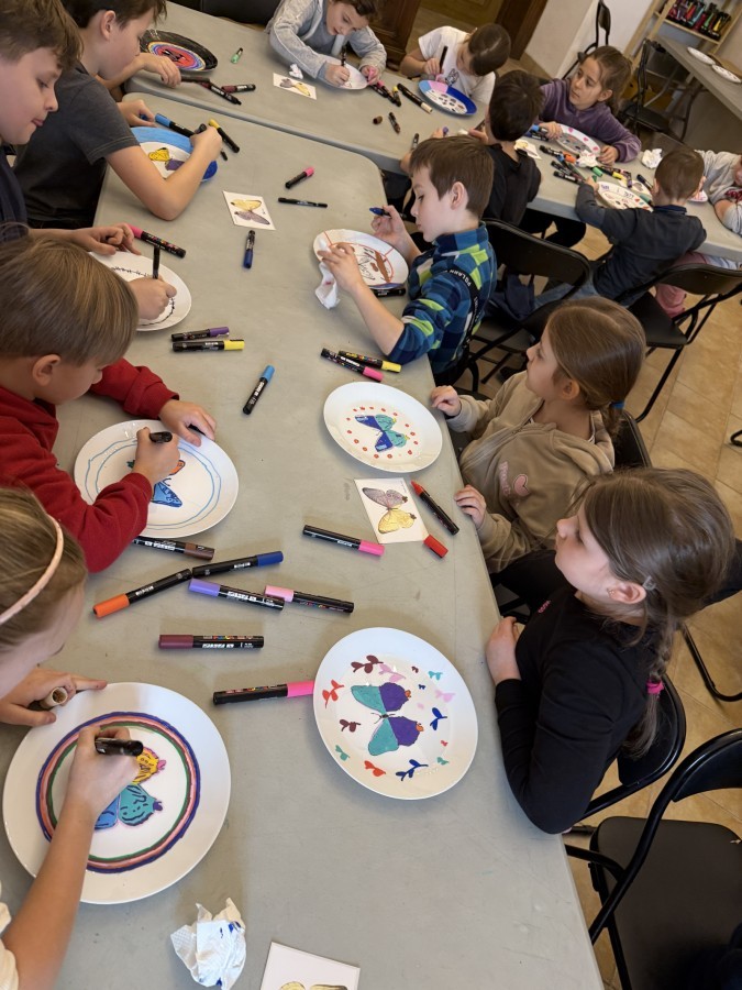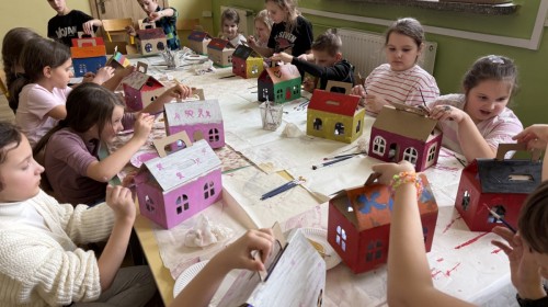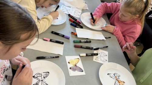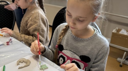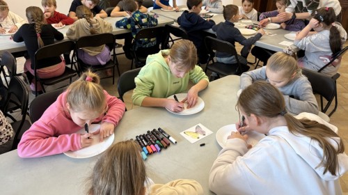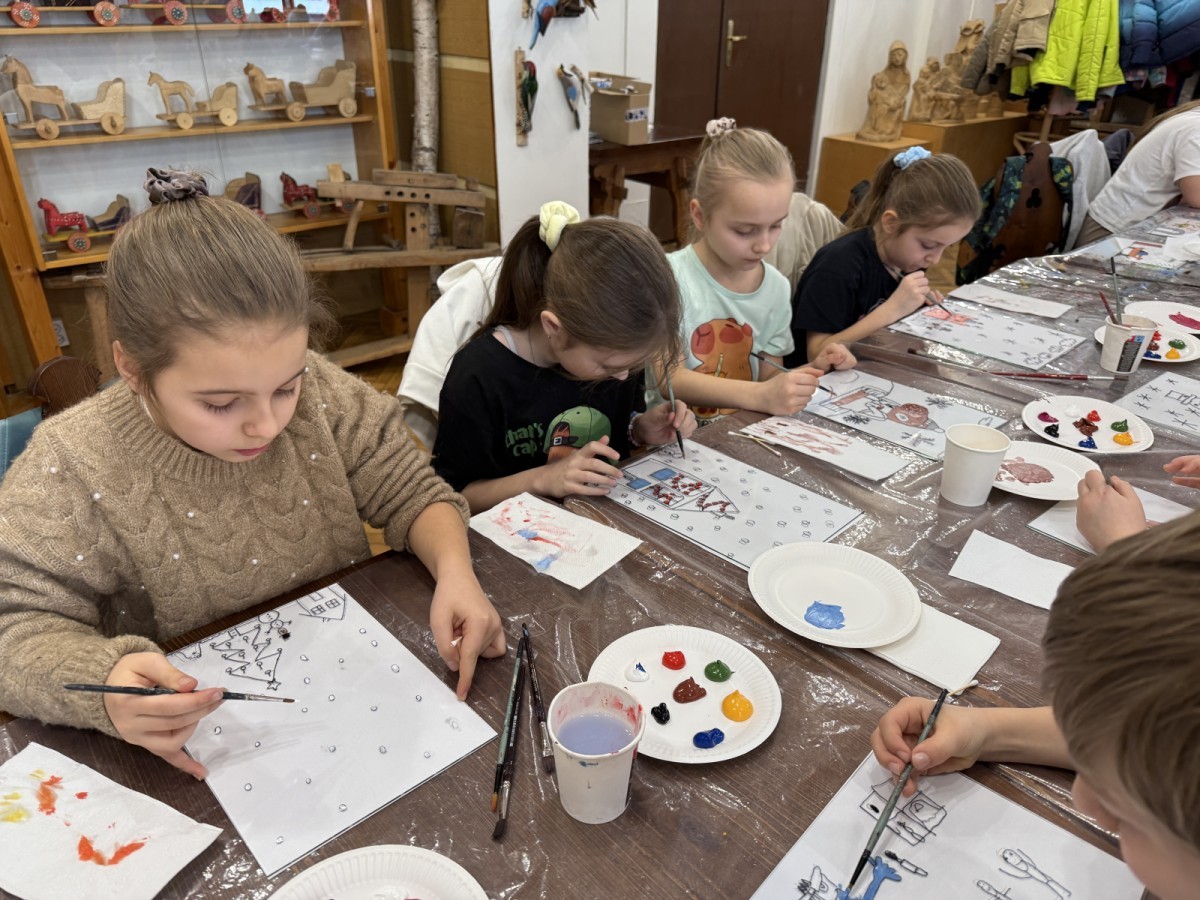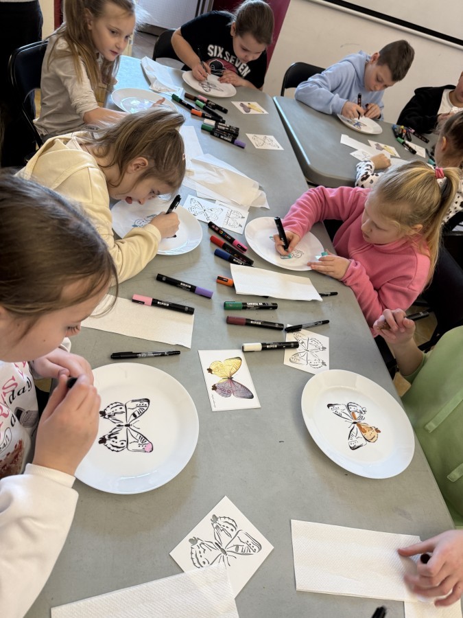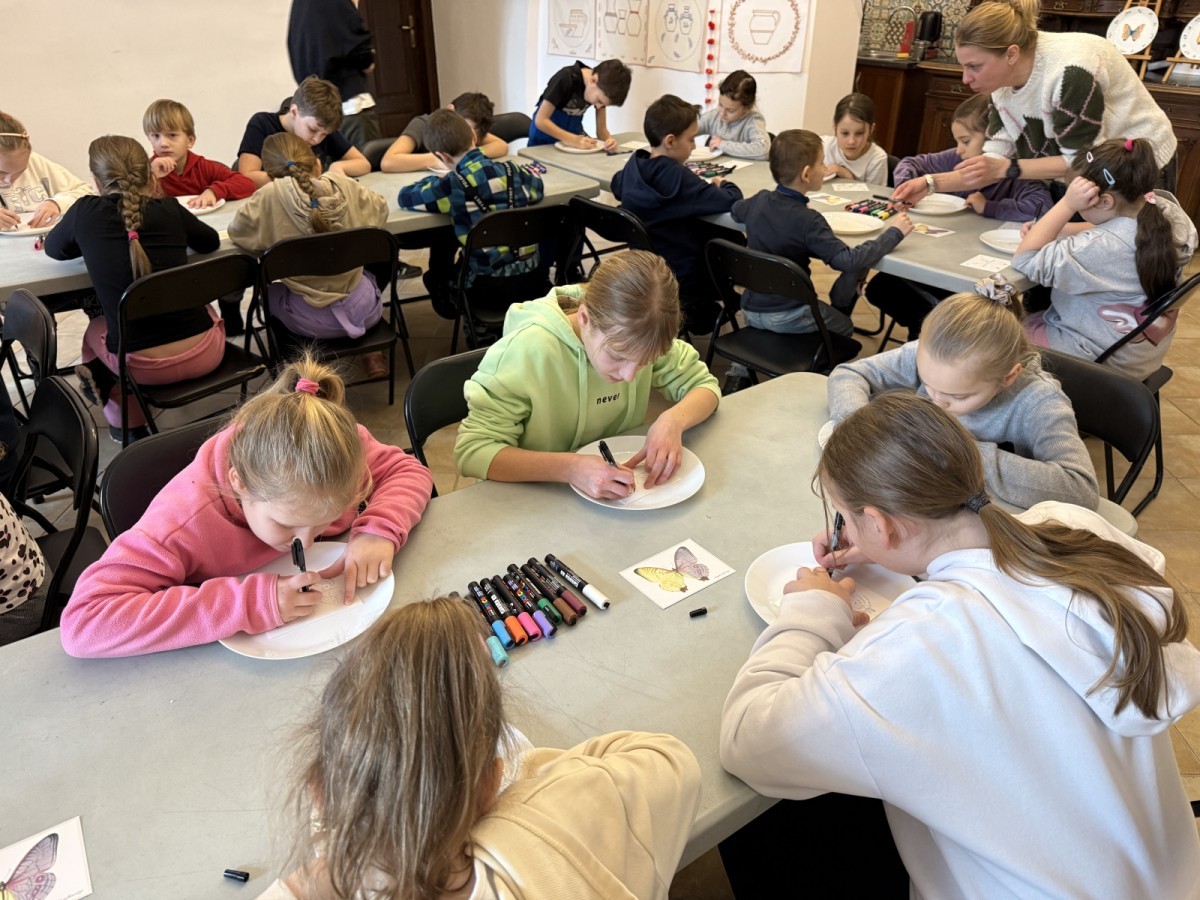 Kolejnym punktem programu była wizyta w filii biblioteki w Mikuszowicach Krakowskich oraz zwiedzanie Zamku Sułkowskich. Podczas pobytu w zamku uczestnicy nie tylko poznali historię tego wyjątkowego miejsca, ale również wzięli udział w warsztatach plastycznych, na których malowali talerze.
