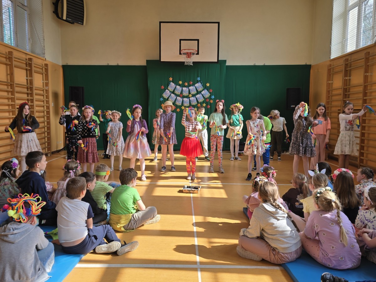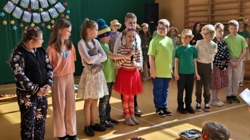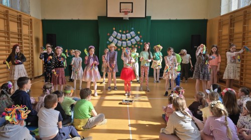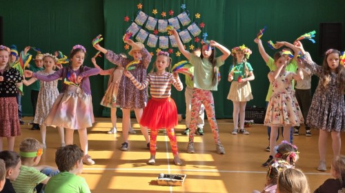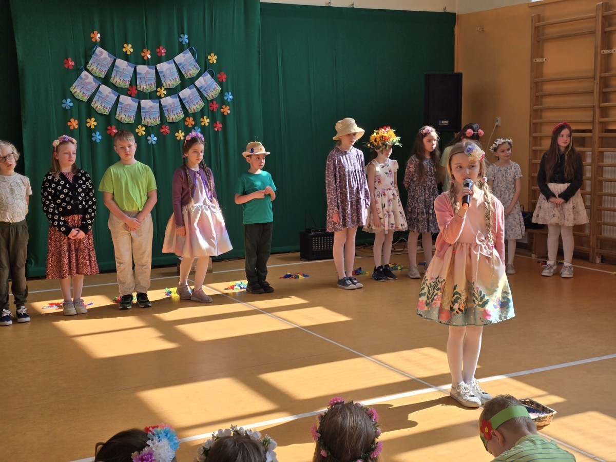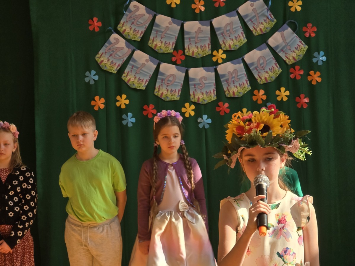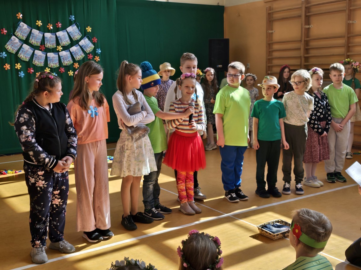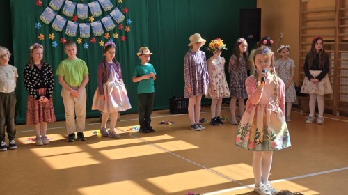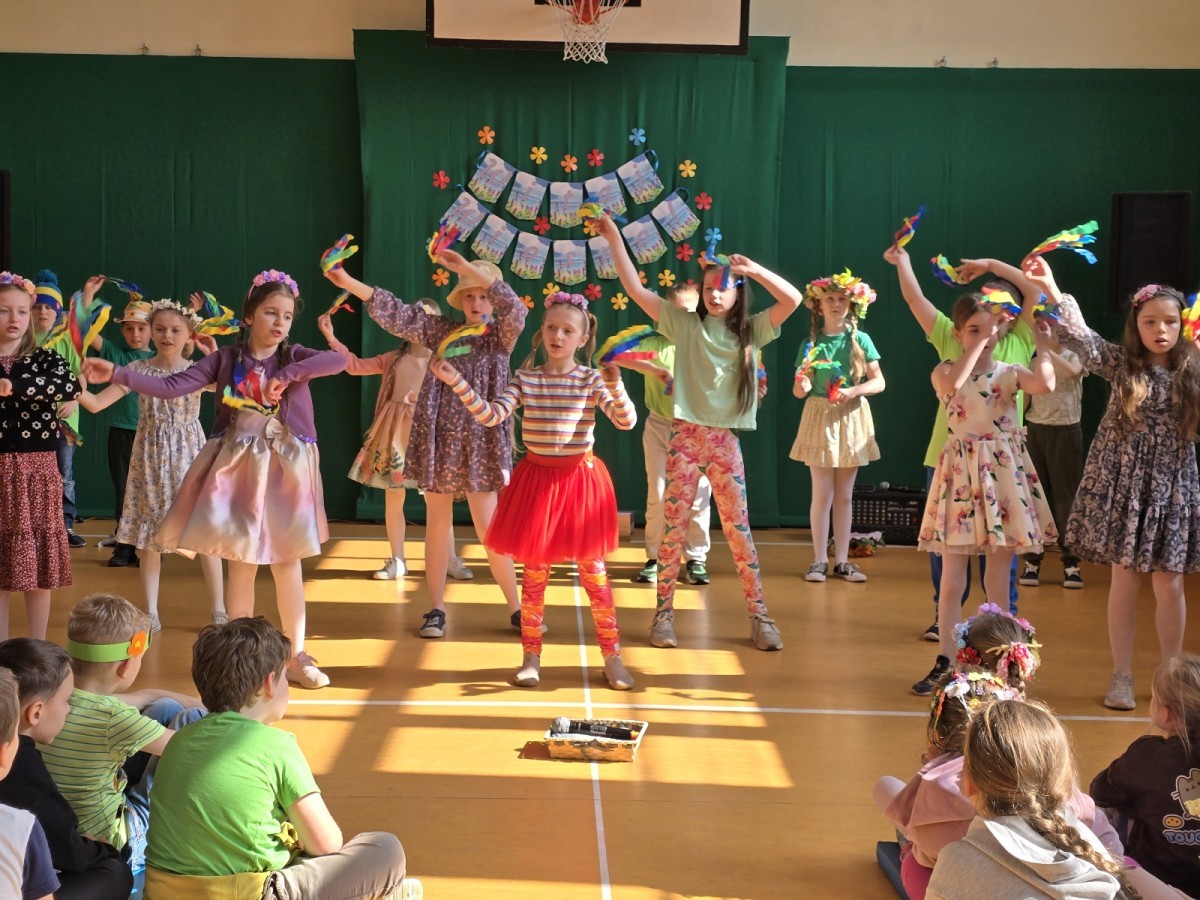 20 marca, z okazji powitania wiosny uczniowie klasy IIIa pod kierunkiem pani Magdaleny Duźniak przygotowali występ dla uczniów klas I-III. Dzieci były ubrane kolorowo i wiosennie, dominowała zieleń i kwiaty. Uczniowie zadbali też o wiosenne nakrycia głowy. Było dużo wesołych piosenek, taniec i piękne wiersze o wiośnie takich poetów jak Julian Tuwim, Jan Brzechwa czy Władysław Bełza. Teraz wiosna może zawitać w całej swej okazałości.