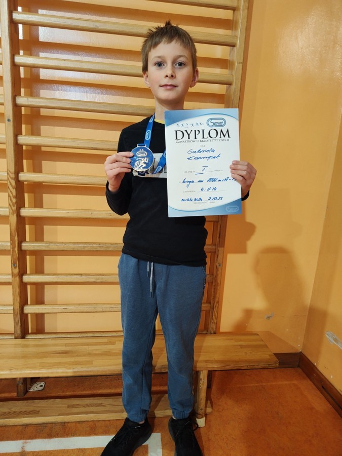 W dniu 2 października 2025r Gabriel Krzempek z kl. IVB zajął I miejsce w biegu na 1000m z wynikiem 4:11.14