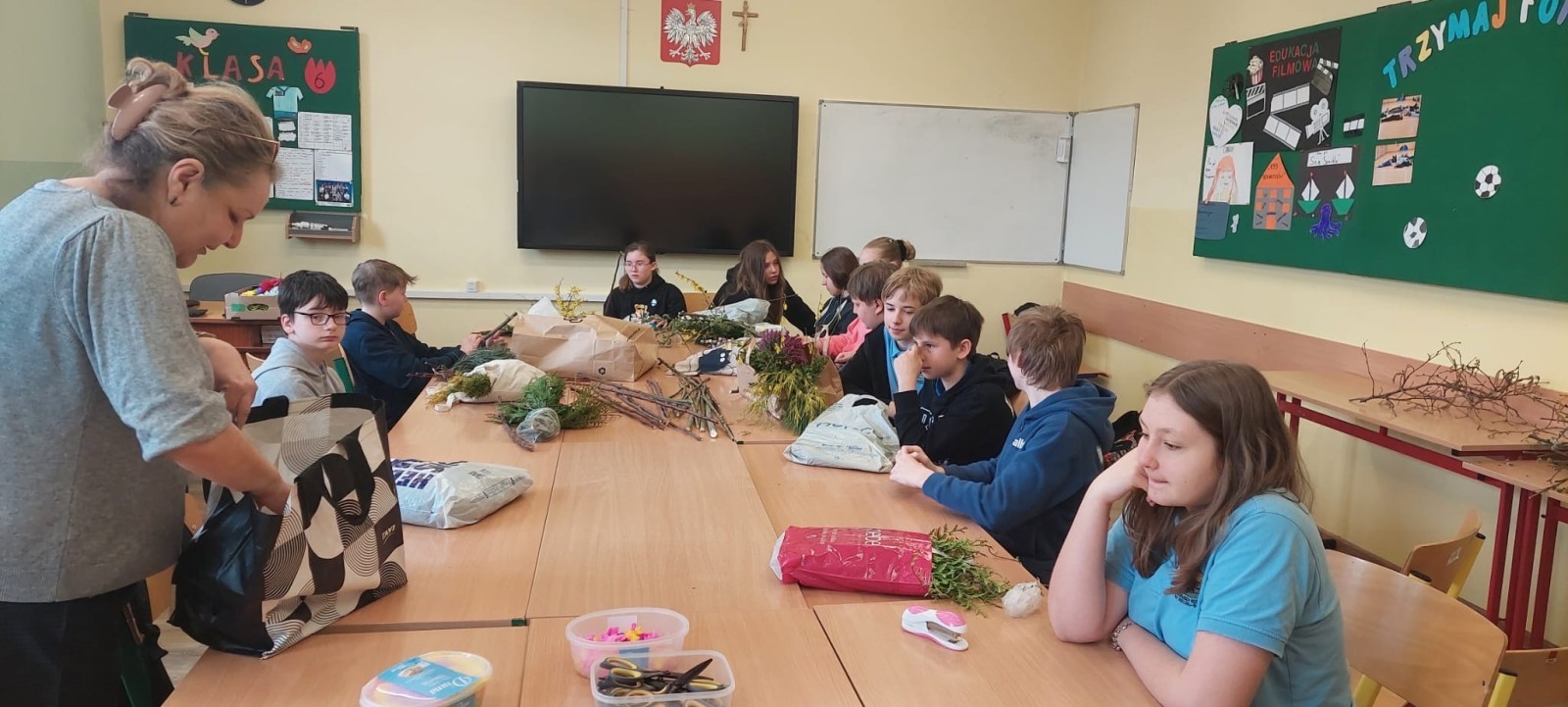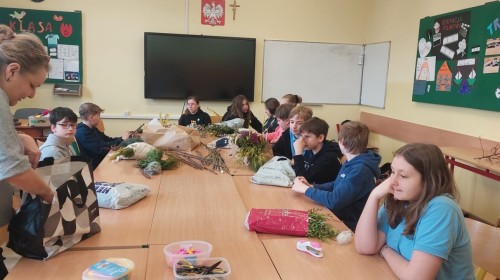 Podczas warsztatów uczniowie mieli okazję poznać znaczenie oraz symbolikę palm wielkanocnych, a także samodzielnie wykonać własne kompozycje. Do pracy wykorzystano różnorodne materiały, takie jak kolorowa bibuła, naturalne elementy roślinne oraz gałązki wierzbowe.