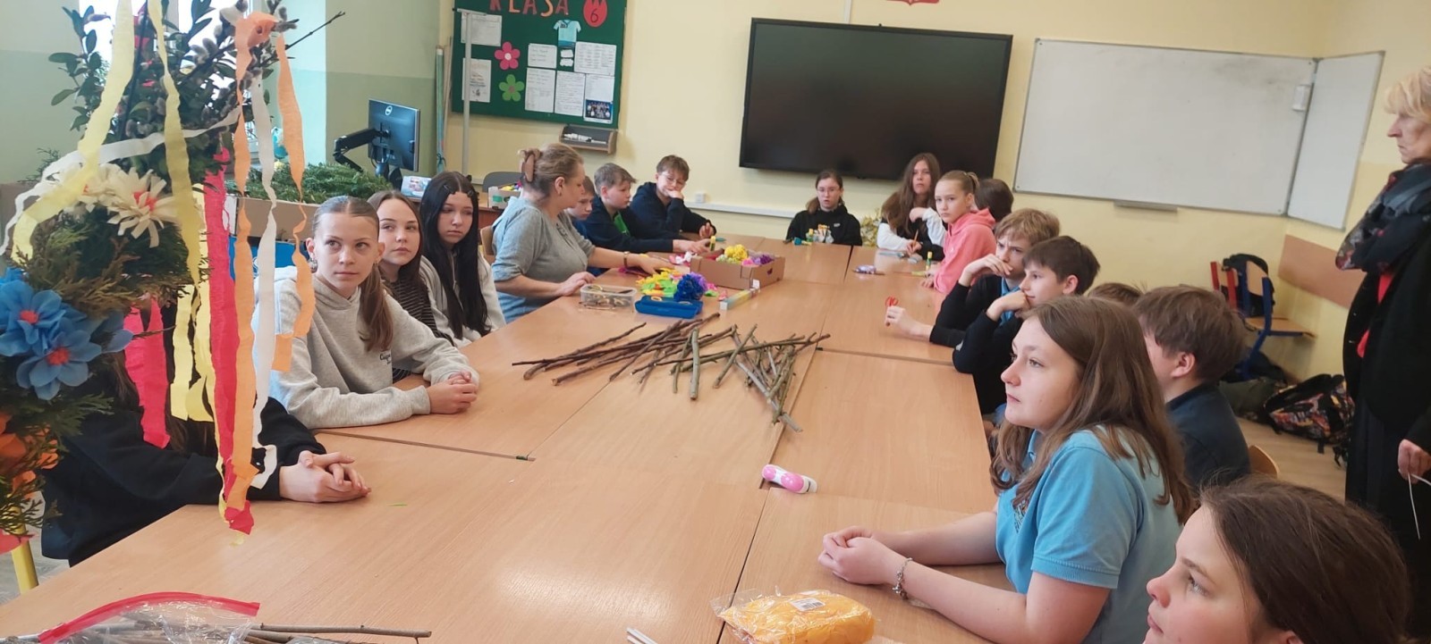 25 marca 2026 roku uczniowie klasy 5a i 6a wzięli udział w wyjątkowych warsztatach plastycznych, zorganizowanych pod kierunkiem nauczycielki plastyki p. Beaty Lekkiej oraz zaproszonych artystek ludowych. Tematem zajęć było tworzenie tradycyjnych wielkanocnych palm obrzędowych.