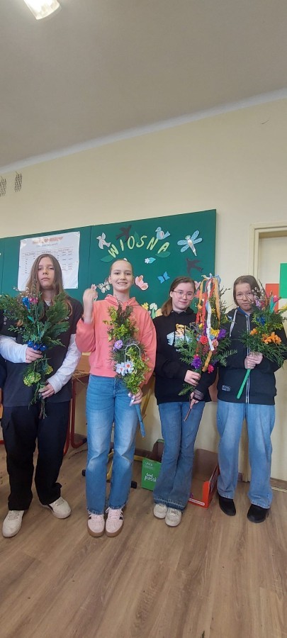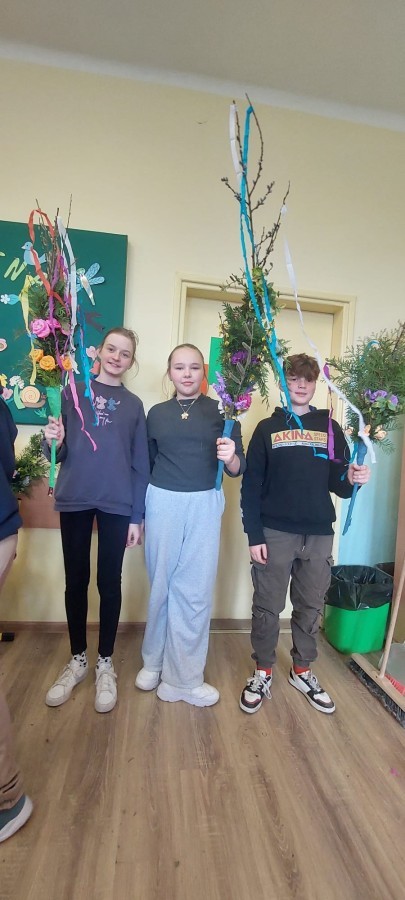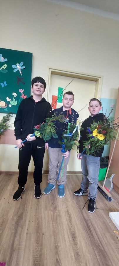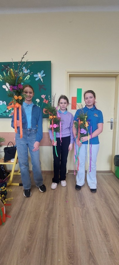 Zajęcia przebiegały w twórczej i radosnej atmosferze, a efektem pracy były piękne, barwne palmy, które stanowią nie tylko ozdobę, ale także nawiązanie do bogatej tradycji ludowej. Warsztaty były cennym doświadczeniem, rozwijającym zdolności manualne uczniów oraz pogłębiającym ich wiedzę o polskich zwyczajach wielkanocnych.