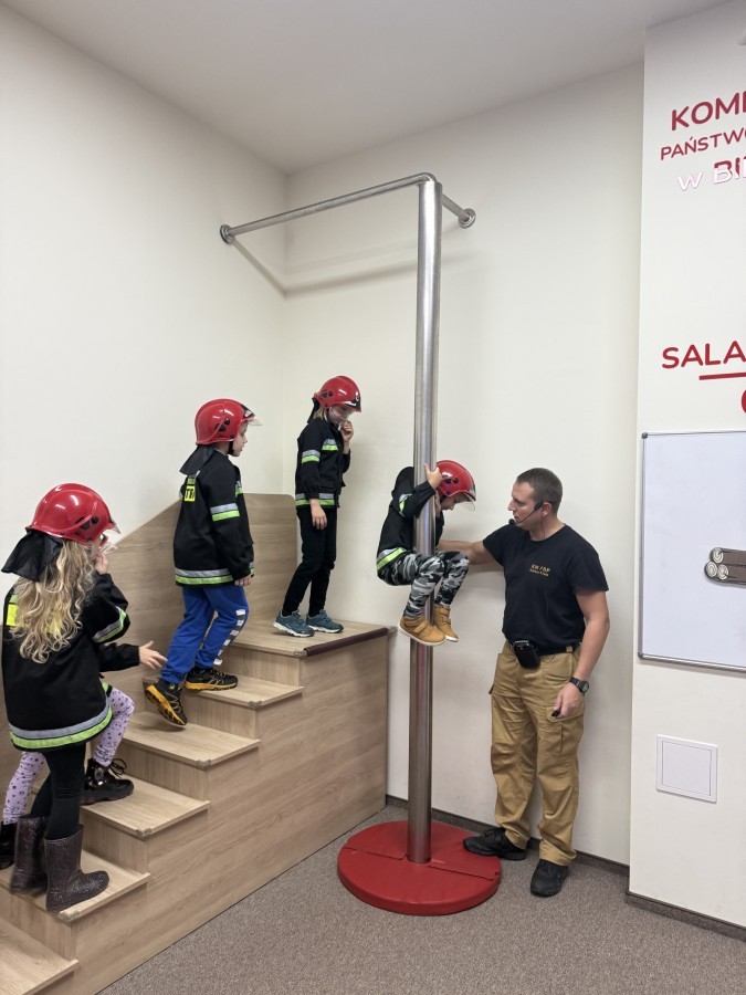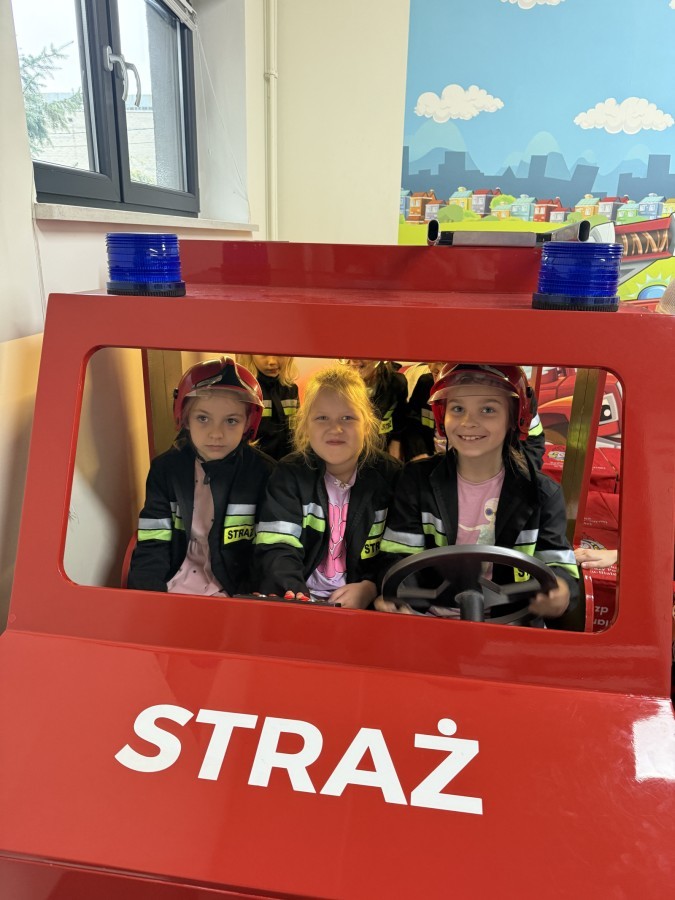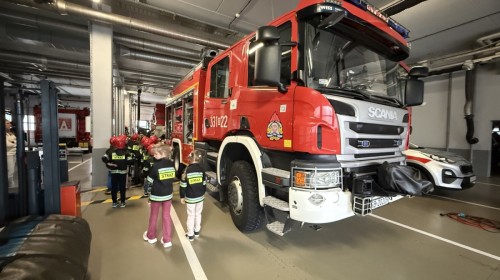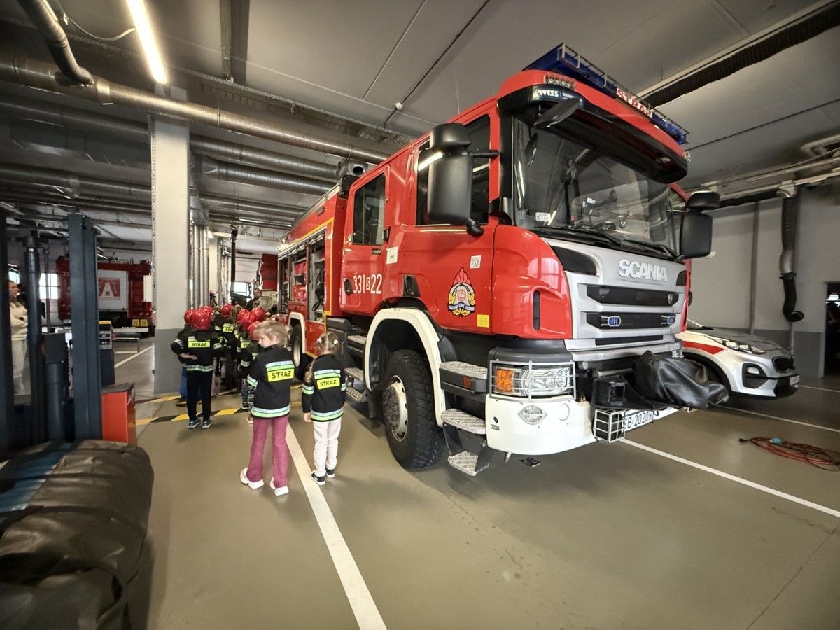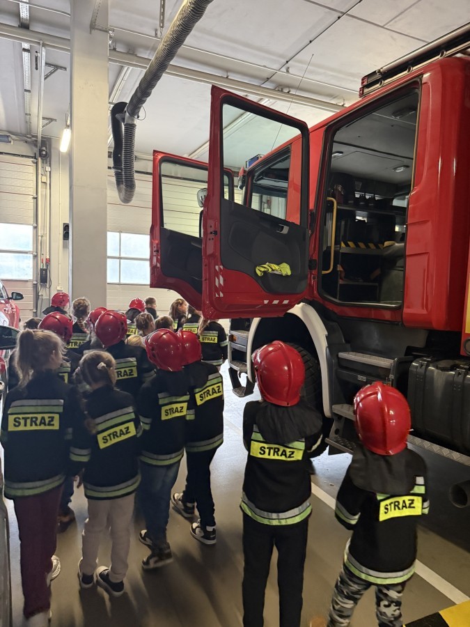 Dodatkową atrakcją wizyty było zwiedzanie jednostki ratowniczo-gaśniczej. Uczniowie mogli z bliska zobaczyć wozy bojowe strażaków oraz ich specjalistyczne wyposażenie, wykorzystywane nie tylko do gaszenia pożarów, ale również do udzielania pomocy poszkodowanym w wypadkach drogowych.