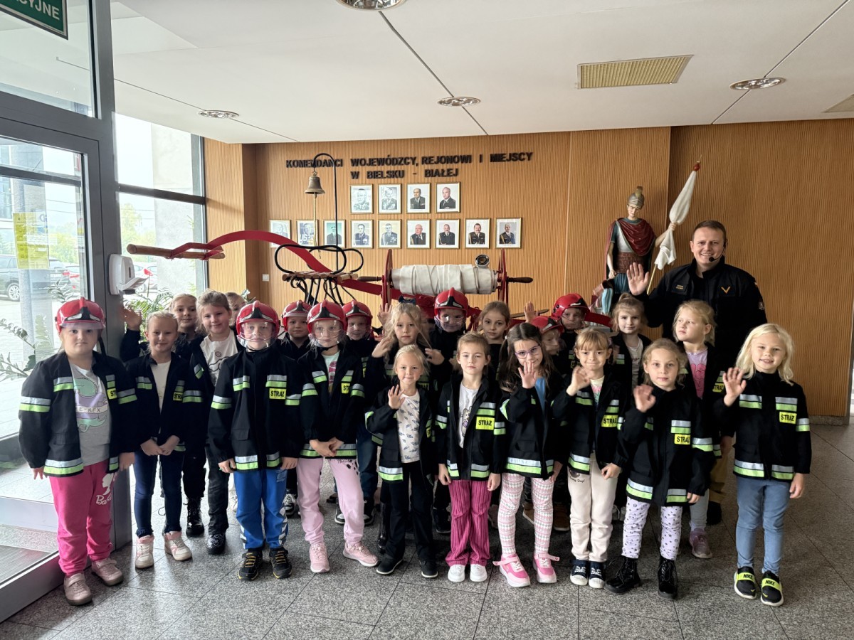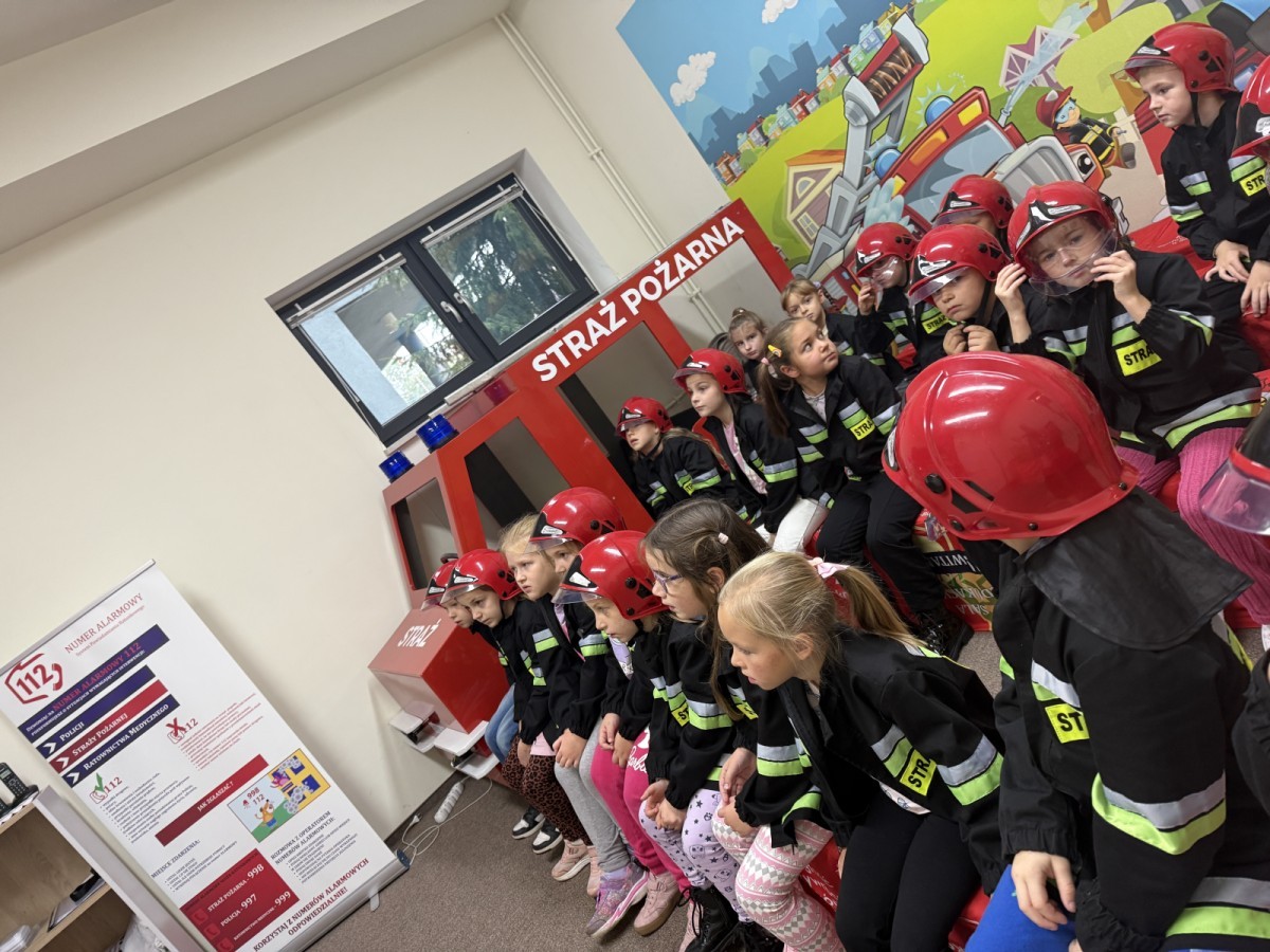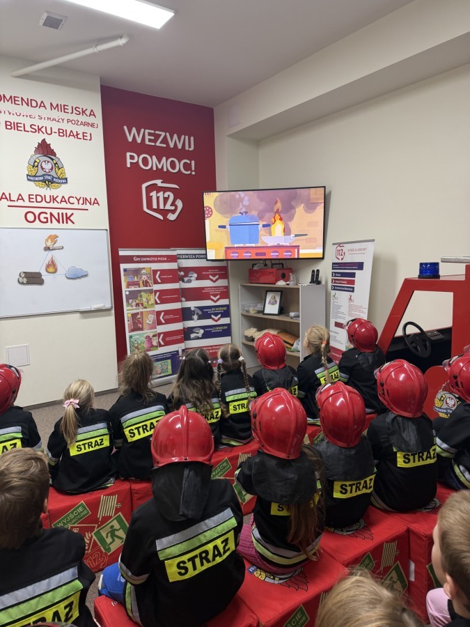 9 października 2025 r. uczniowie klasy I odwiedzili interaktywną salę edukacyjną „Ognik” mieszczącą się przy Komendzie Miejskiej Państwowej Straży Pożarnej w Bielsku-Białej. Podczas zajęć dzieci wzięły udział w ciekawych warsztatach dotyczących bezpieczeństwa w domu, w szkole i na drodze. Dowiedziały się, jak należy postępować w sytuacjach zagrożenia oraz jak unikać niebezpiecznych zachowań.
